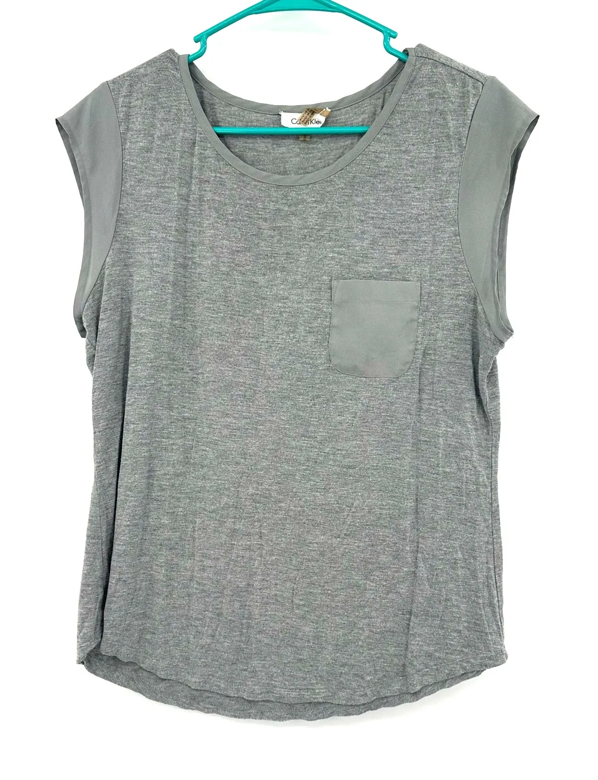Calvin Klein Size Medium Shirt Gray Cut Off Sleeves Tank Pocket Tee Crew Neck