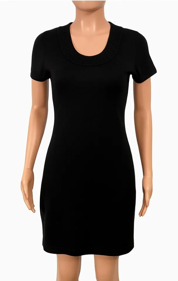 Calvin Klein Sweater Dress Black Short Sleeve Knit Ribbed Scoop Neck Size Small Women's Size Small... Show more
