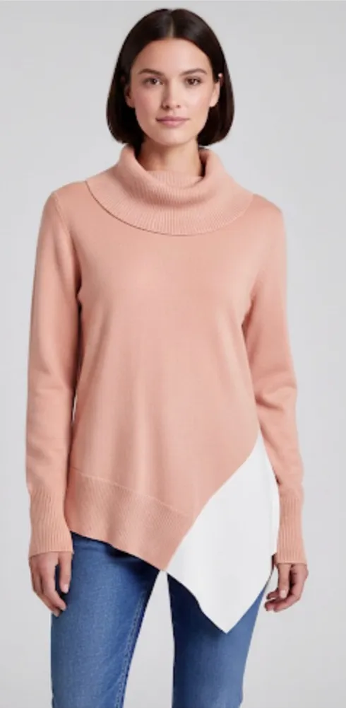 Calvin Klein Apricot Colorblock Cowl Neck Asymmetrical Tunic Sweater ~ a soft peachy pink shade ~... Show more
