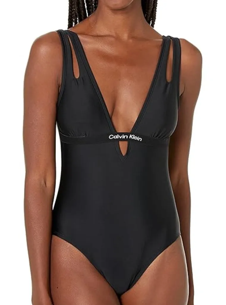 Calvin Klein Swimwear Women's Logo V-Neck Cut Out One Piece Swimsuit Size S Make a sleek statement... Show more