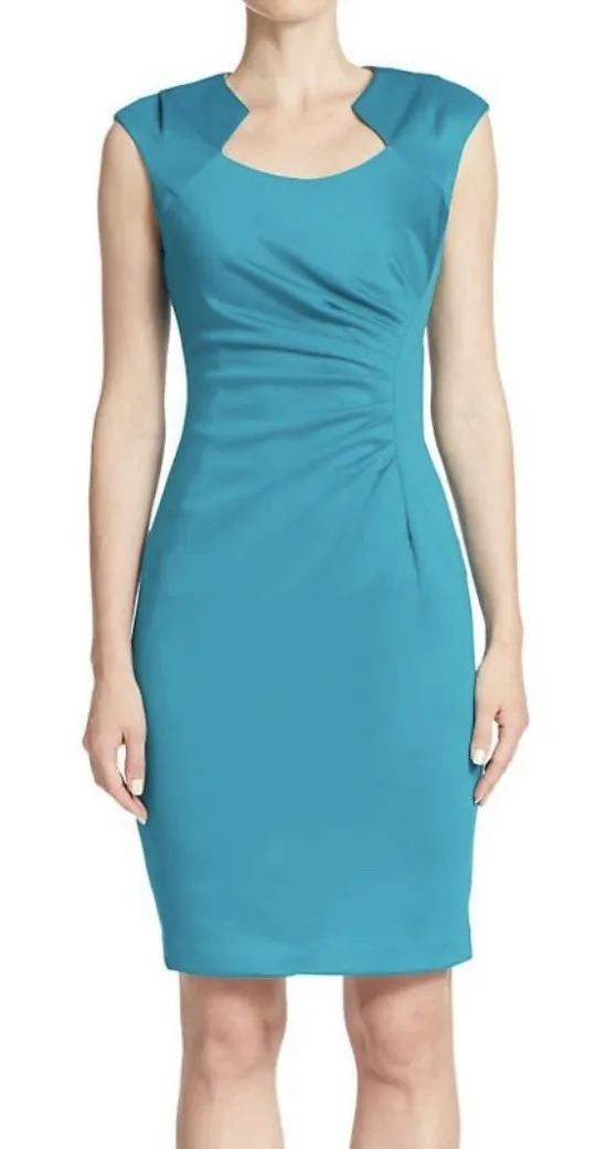 Horseshoe neck Unlined Concealed back zipper closure Stretch crepe fabric Polyester/Spandex Dry... Show more