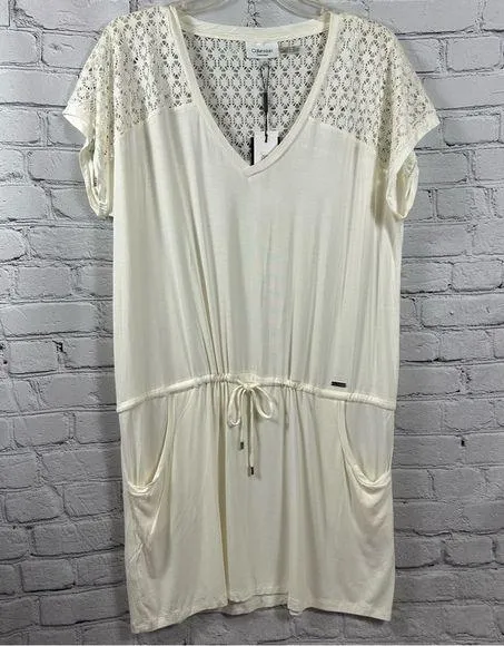 Get sun splashed in Calvin Klein's sleek tunic cover-up, featuring a crochet accent at the shoulders... Show more