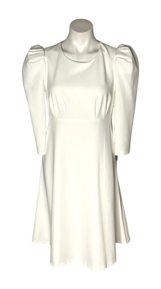 This sweet dress features a round neck line, gathered shoulders, creating a bit of a puff sleeve, hi... Show more