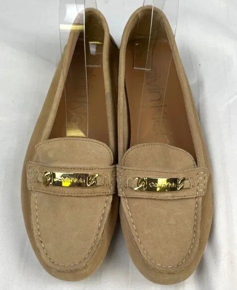 Offers a slip-on shoes style in a beige color and gold logo plate on the front. Made of leather and... Show more