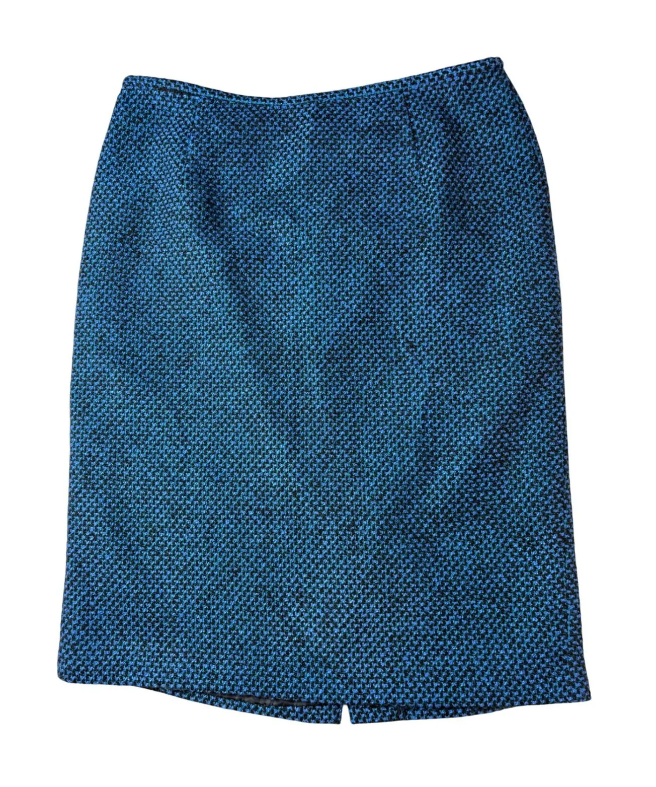 Calvin Klein pencil skirt in a blue and black textured weave. Features a classic silhouette with a b... Show more