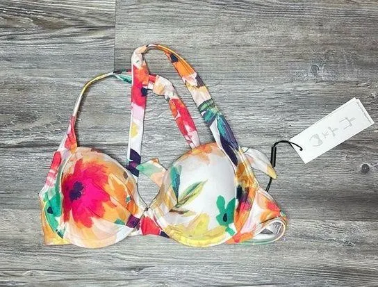 Brand new with tags Calvin Klein Colorful Floral Underwire Bikini Top Convertible neck strap Mold... Show more