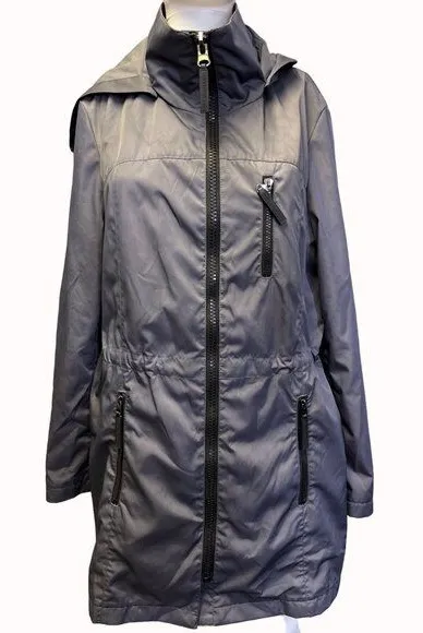 Features a full zipper up closure trench coat that draws out your waist and will give a nice modern... Show more