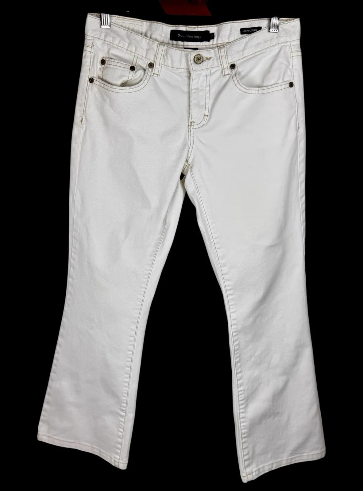 Pre-owned good condition white low rise flare jeans by Calvin Klein. Detected minor stain and some... Show more