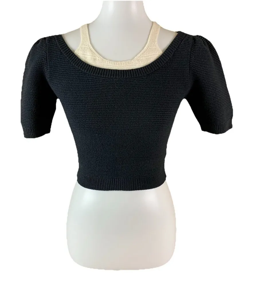 Calvin Luo S Black Cream Knit‎ Short Sleeve Cropped Sweater Layered Look Chic - $55 - From Rodica