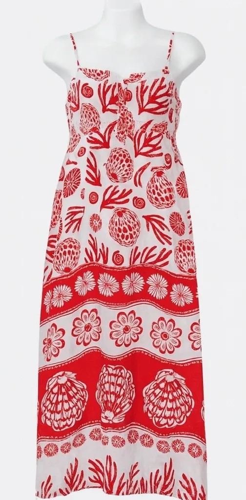 Style: Sundress, Maxi, A-Line Dress Length: Long Color: Red White Department: Women Sleeve Length: Sleeveless Pattern: Floral Occasion: Casual, Travel, Party/Cocktail Material: Linen, Rayon Features: Pockets Character: Beach Girl, Coastal Cowgirl, Resort Girl, Summer Girl, Vacationer boho chic, coastal grandma, resort wear, summer getaway, beach vacation, St Barth style, coastal chic, island vibes, tropical maxi, sundress, resort chic, vacation style, elegant casual, beach wedding guest, cruise wear, summer party outfit, effortless style, travel wardrobe, red white print dress, Calypso boho, coastal elegance, chic linen dress, poolside style Measurements are Approximate: Length 56" Armpit to Armpit 17" Waist 32" New with Tag. Please see photos for measurements, condition and details. All items are shipped promptly. (6933)