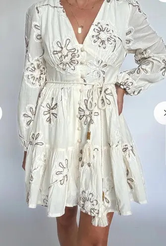 Camellia this charming Isla tunic-style mini dress in cream features delicate floral embroidery for... Show more