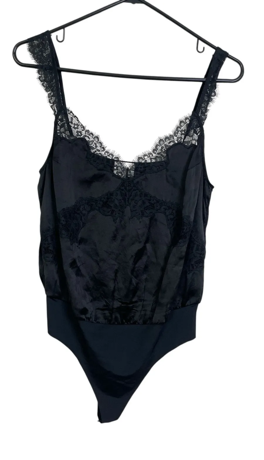 This listing is for a CAMI NYC Silk Body Suit. Black. Lace satin upper. Snap closure. Silk upper / n... Show more