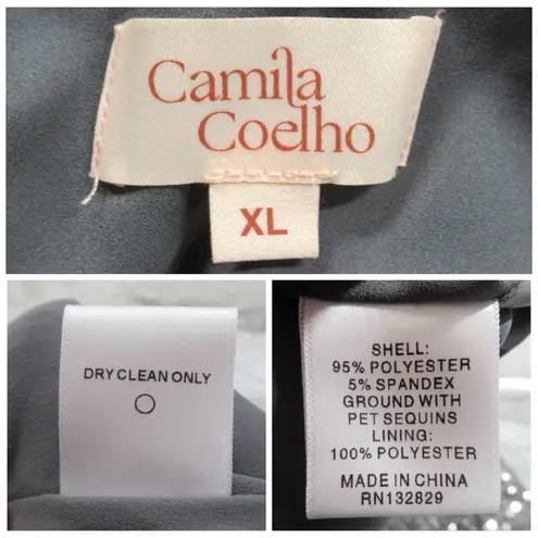CAMILA COELHO Fabiolah Silver Sequin Wide-Leg Jumpsuit Women’s Size XL Color: Silver V-Neck Back Zipper Closure Wide-Leg Lined Allover Sequin Shell: Polyester, Spandex Blend Lining: Polyester Dry Clean Very Gently Preowned In Great Condition. See Pictures For Approximate Measurements. Smoke Free Home.