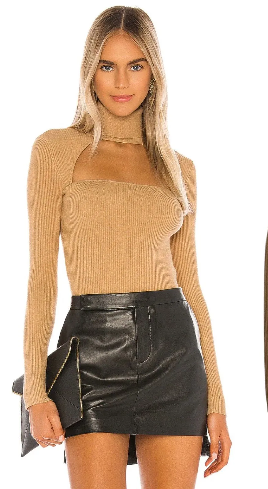 Camila Coelho Roscoe Sweater Cut Out Ribbed Turtleneck Camel Tan Size Small - $69 - From Spin