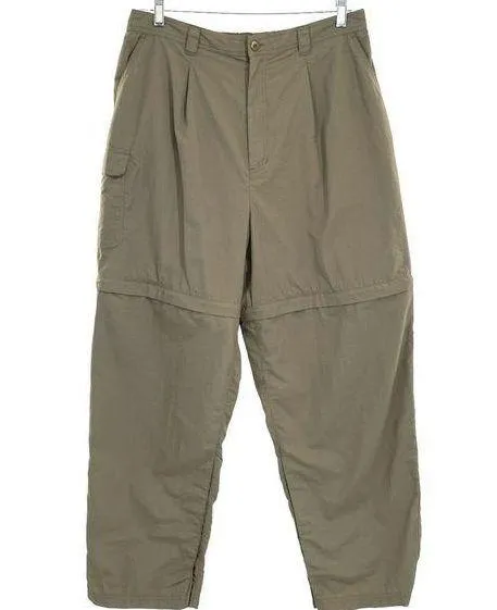 Size XL. In excellent condition, no flaws. Laying flat measurements: 14” rise, 30” inseam. 16 1/2” across waist, unstretched. The legs zip off to create shorts. Lightweight, water repellent, and quick drying. Snap and hook & loop to expand or tighten bottom hem.