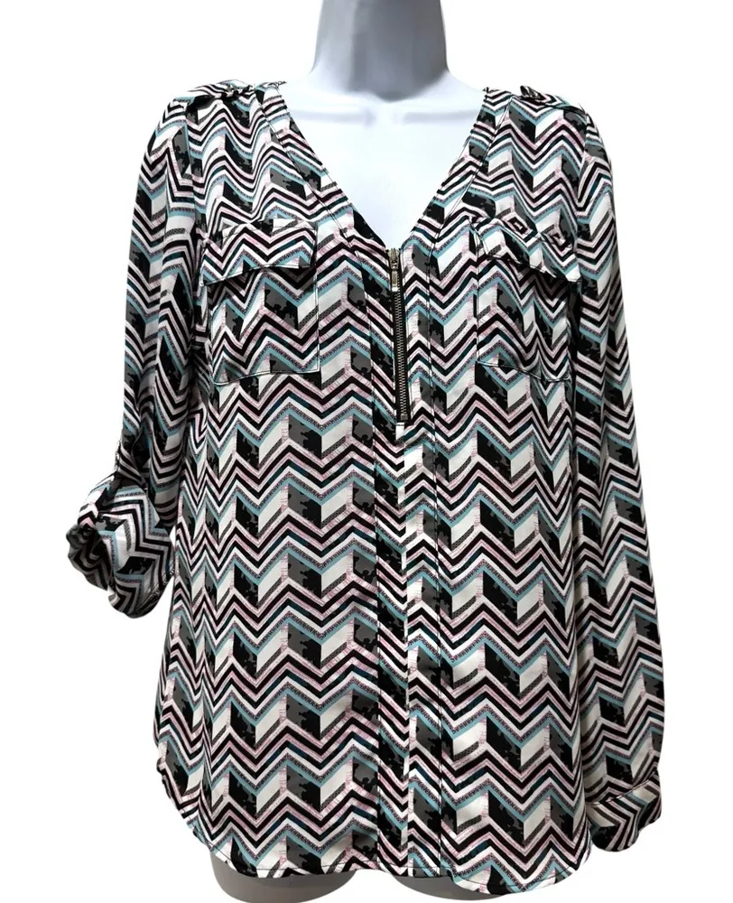 Brand-Candie’s Size-M Color-Black Pink Teal Chevron Pattern Condition-Preowned in excellent conditio... Show more