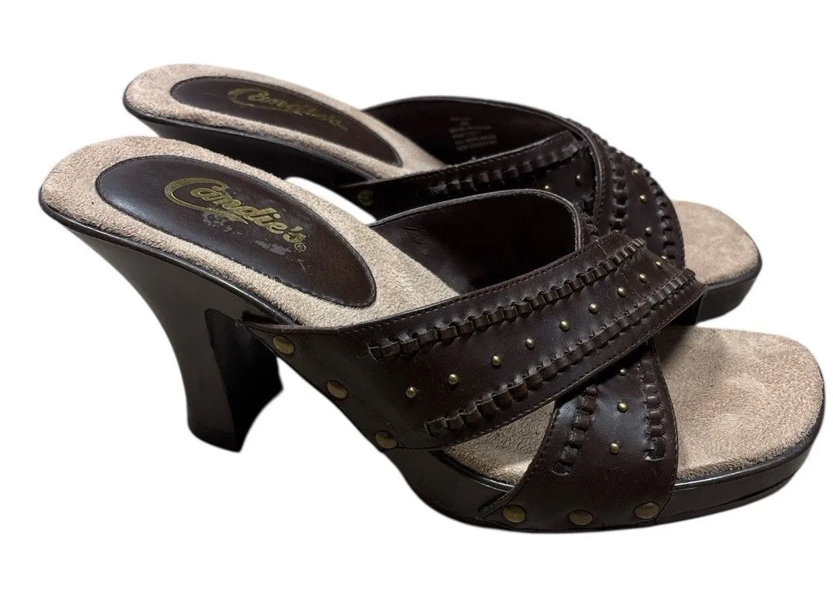 The Candies Rolley Vintage 90s Y2K Womens Studded Brown Chunky High Heel Shoes in size 8 are a styli... Show more
