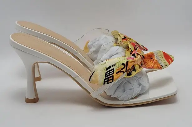 Elevate your look with these chic Cape Robbin mule heels, featuring bold gold chain detailing, clear PVC straps, and playful scarf accents. The sleek white finish and stiletto heel add modern elegance with a trendy twist. ● Brand: Cape Robbin ● Size: Women's 8 Color: White with Multicolor Accents ● Material: Man-Made Materials ● Condition: Excellent Condition Measurements: ● Heel Height: Approx. 4 inches Key Features: ● Clear PVC straps with gold chain embellishment ● Colorful scarf ties add a fashion-forward touch ● Square toe silhouette for modern appeal ● Slip-on mule style ● Stiletto heel for height and sophistication Perfect for brunch, date night, or summer parties, these heels bring standout flair to any outfit. Style with wide-leg trousers or a midi dress for instant glam. Ships Fast! #CapeRobbinHeels #PVCHeels #StatementShoes #WhiteMules #SummerStyle