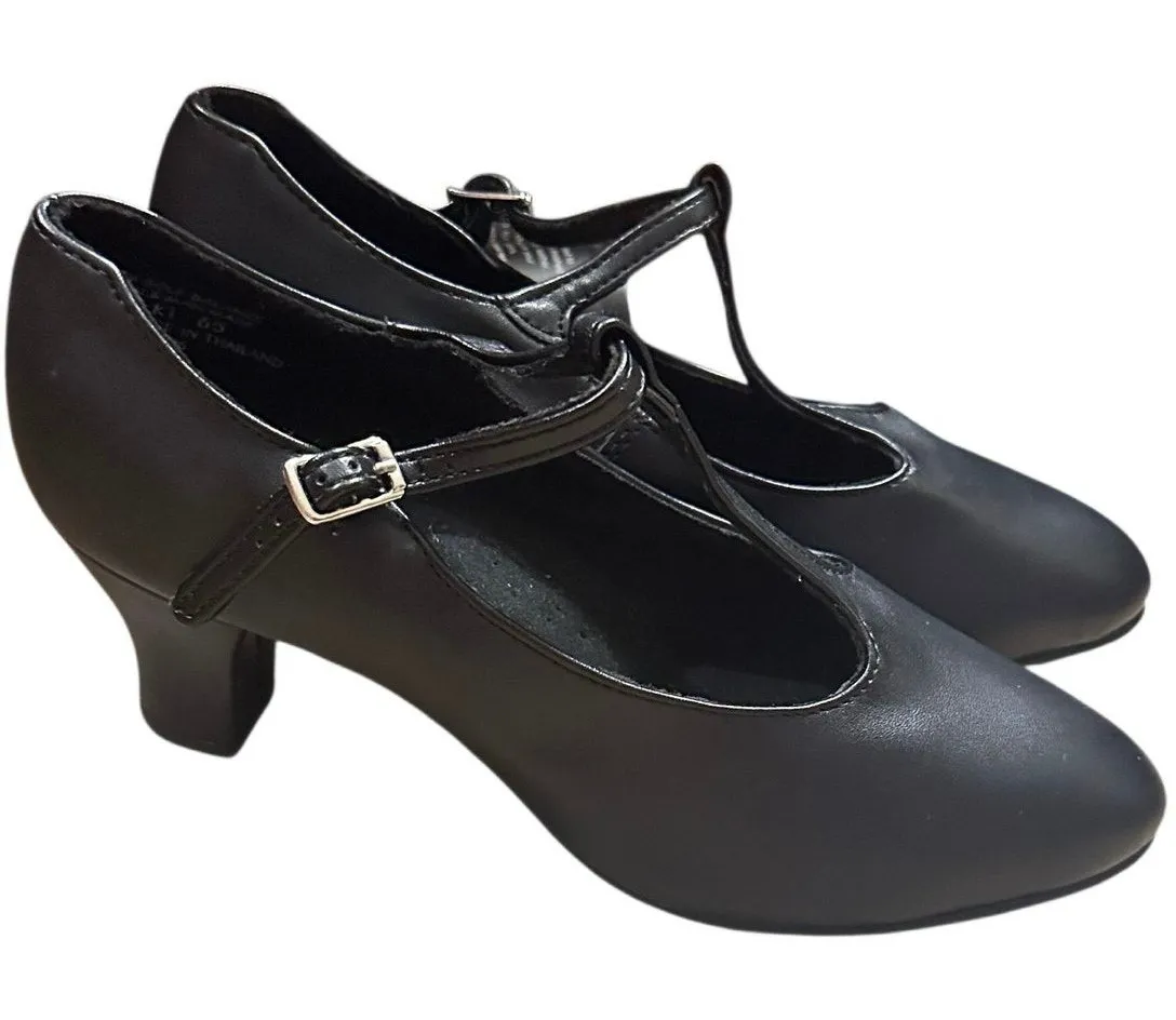 Excellent, worn-once condition, no noted flaws Women's size 8, medium width (Note from website: Women begin with street shoe size. Men begin 2 sizes up from street shoe size. This shoe runs narrow.) Elevate your performance in the Jr. Footlight T-Strap Character Shoe. Features a non-slip heel with leather top lift that creates balance and a greater strike zone. Soft microfiber lining is moisture wicking and the foam padded footbed ensures extra comfort. Slim buckle closure eliminates the worry of the character shoe slipping off during vigorous routines. *Open to offers Dance, theater, jazz, ballet, tap, play, musical, school, college, Broadway, West End, chorus, ensemble, dancing