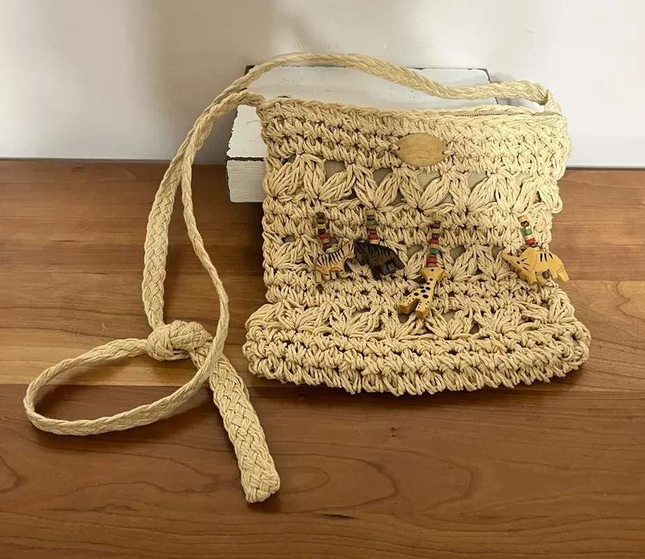Cappelli Straworld Inc,‎ Wooden Animals Woven Straw Crossbody Bag Handmade Tan - $20 - From Quirky