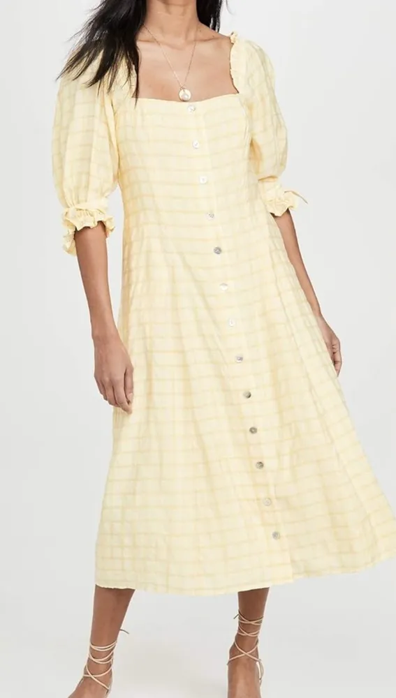 Capulet Plaid romantic flounce Sleeve midi Dress Yellow haddie women S - $93 - From Yosanny