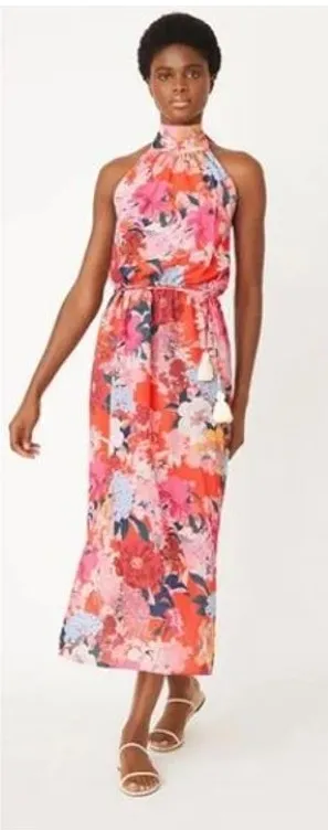 Made of a bold floral-print fabric, the Allison dress from Cara Cara features a halterneck blouson bodice with a drawstring waist and a tassel detail. This midi-length style is complete with a side thigh-high slit. Size XS Pit to pit Halterneck Open back Sleeveless Tie-neck closure Elasticized drawstring waistband Side thigh-high slit 100% viscose Dry clean only Imported About 47.5" from shoulder to hem cottagecore, colorful, bright, vibrant, gypsy, balletcore, hippie, sundress, barbie, brunch, festival, cute, fun, trendy, sexy, hot, modern, contemporary, boho, bohemian, fall, cottagecore, revolve, shopbop, nordstrom, beach, island, vacation, resort, coastal, travel, concert, western, blogger favorite, girlie, girly, flirty, victorian, romantic, feminine, garmentory, net a porter, intermix, aritzia, classic, traditional, modest, christmas gift, peasant, laura ingalls, little house on the praire, tropical, celeb style, celebrity favorite, euphoria, vlogger favorite, blogger favorite, preppy, gossip girl, clueless, designer, hamptons, instagram favorite, instagram style, farfetch, spell, spell & the gypsy, hamptons, doen, christy dawn, spell, sustainable, eco friendy, organic, deadstock, easter, easter dress, communion, church, church dress, moda operandi