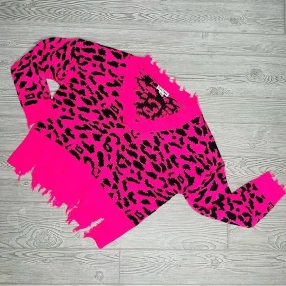 Caren sport hot Pink Black Leopard Animal Print Shredded distressed Sweater 3x Size undefined - $34 - From Sara