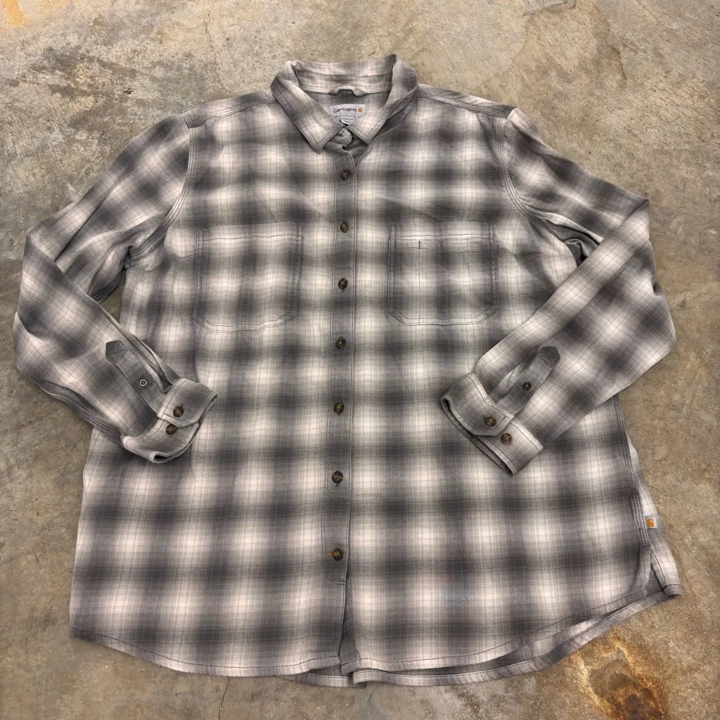 Carhartt gray and white plaid flannel button down shirt Size 2XL 20/22 W Non-smoking #carhartt... Show more