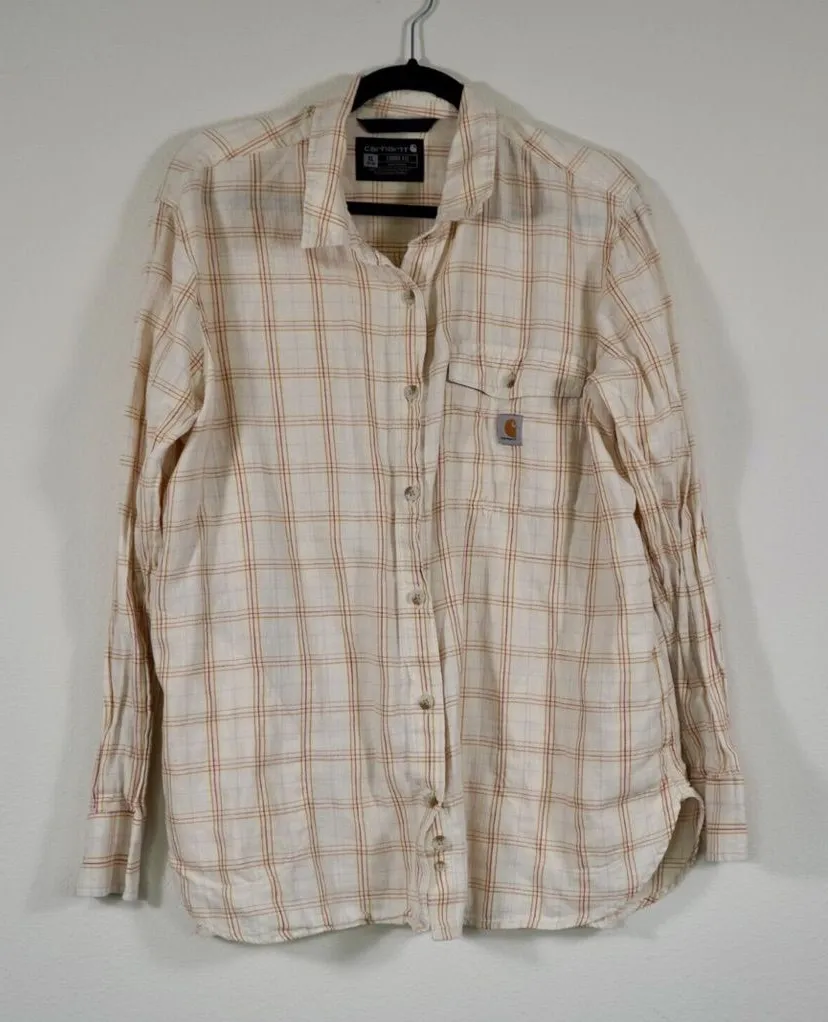 Carhartt Loose Fit Button Shirt Womens XL Cream Plaid Front Pockets Super Soft Pink - $20 - From Atheana