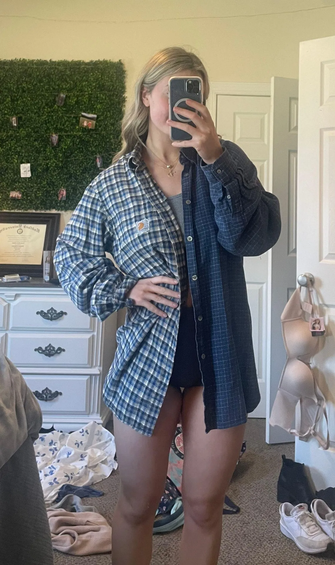 Reworked Carhartt Flannel Blue Size XL Men’s/Fits like a XXL in Women’s Modeled on a Women’s Small P... Show more