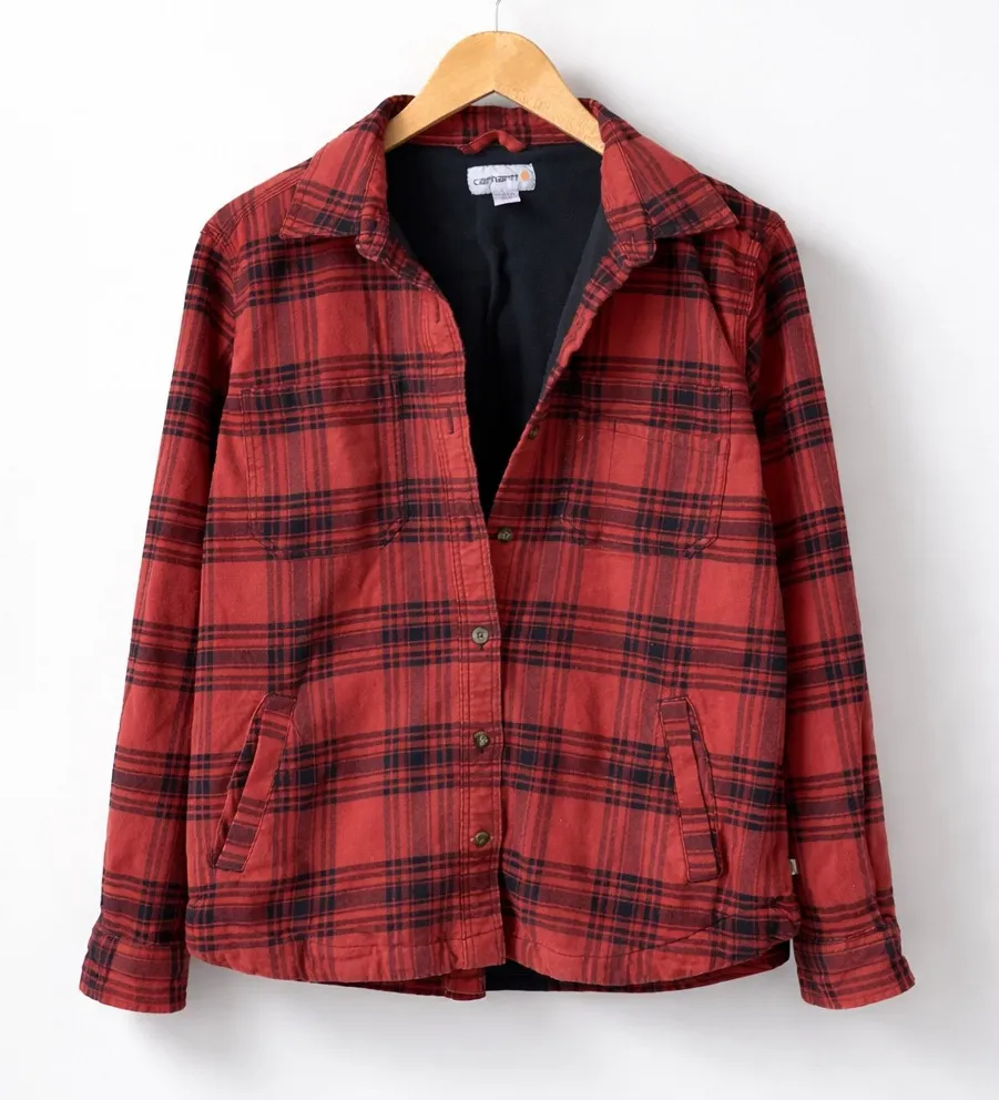Carhartt women's fleece lined flannel. Relaxed fit. Pockets and button front with collar. Women’s s... Show more