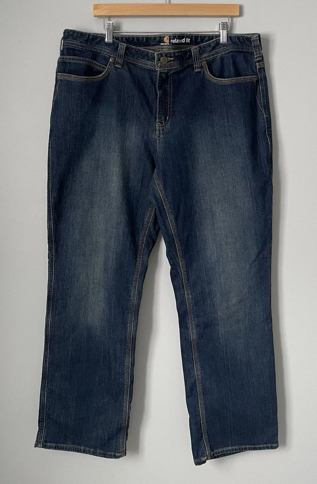 Carhartt Women's Boone Flannel-Lined Relaxed Fit Dark Wash Denim Jeans Pants Size: 18 Regular Cond... Show more