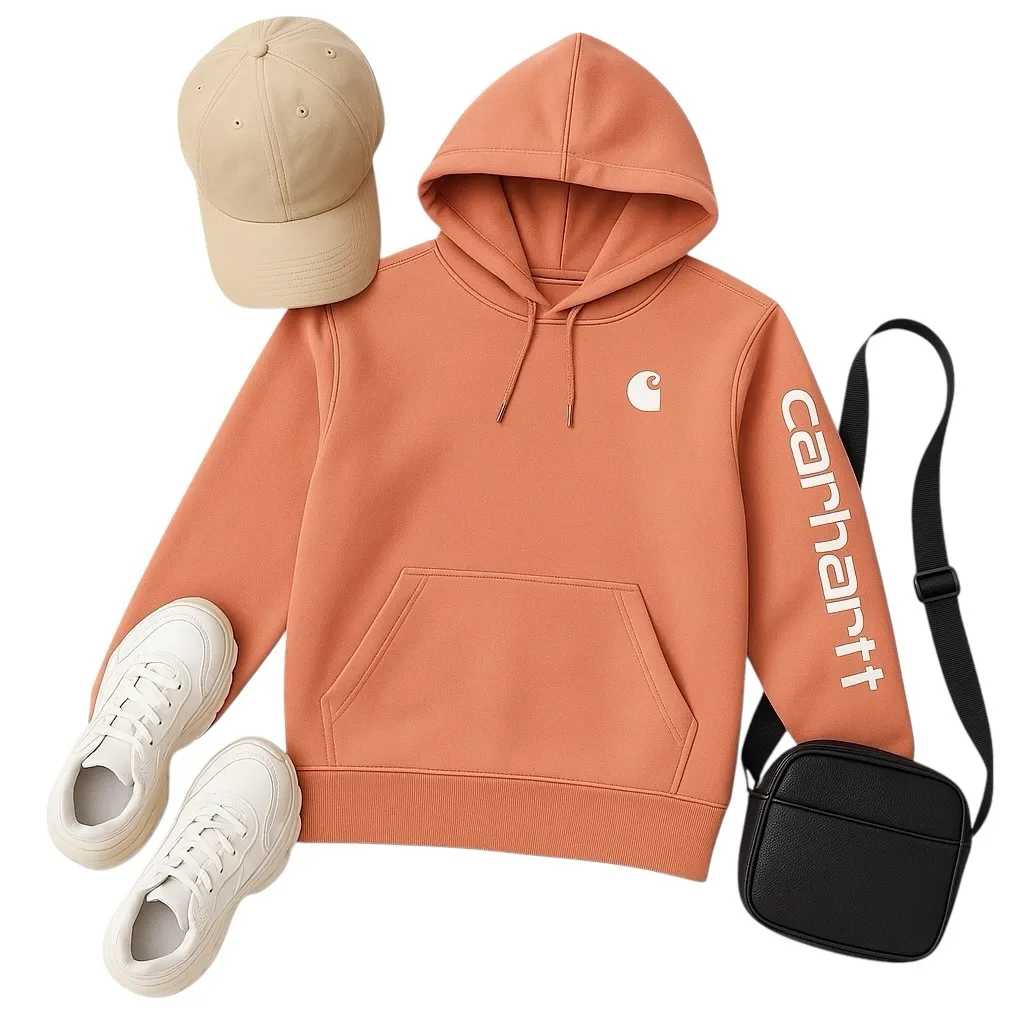 Carhartt Womens Hoodie Rose Clay XS Soft Orange Logo Sleeve Relaxed Fit EUC This Carhartt women’s h... Show more