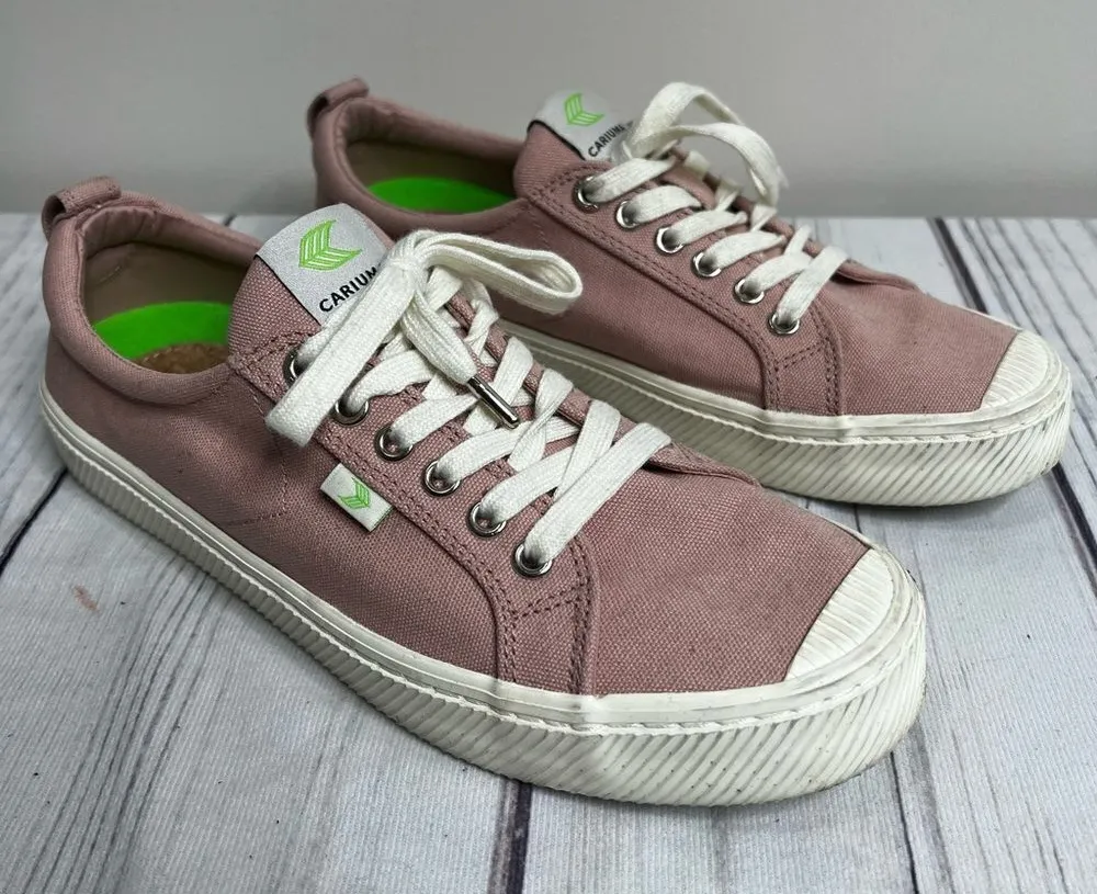 Step up your shoe game with these stylish Cariuma OCA Low Rose Canvas Sneakers. These unisex shoes, with a US women's size 10.5 and men's size 9, feature a solid pink color and a beautiful rose theme, perfect for the summer, fall, and spring seasons. They have a low top shoe shaft style and are made from durable canvas fabric, ensuring your feet stay comfortable and fashionable during casual occasions. The Cariuma brand is known for their high-quality athletic shoes, and these sneakers are no exception. With a style code of 100103R02M and an EU size of 41.5, they are the perfect addition to any sneaker collection. Don't miss out on the opportunity to step out in style with these Cariuma OCA Low Rose Canvas Sneakers. Very Good Used Condition
