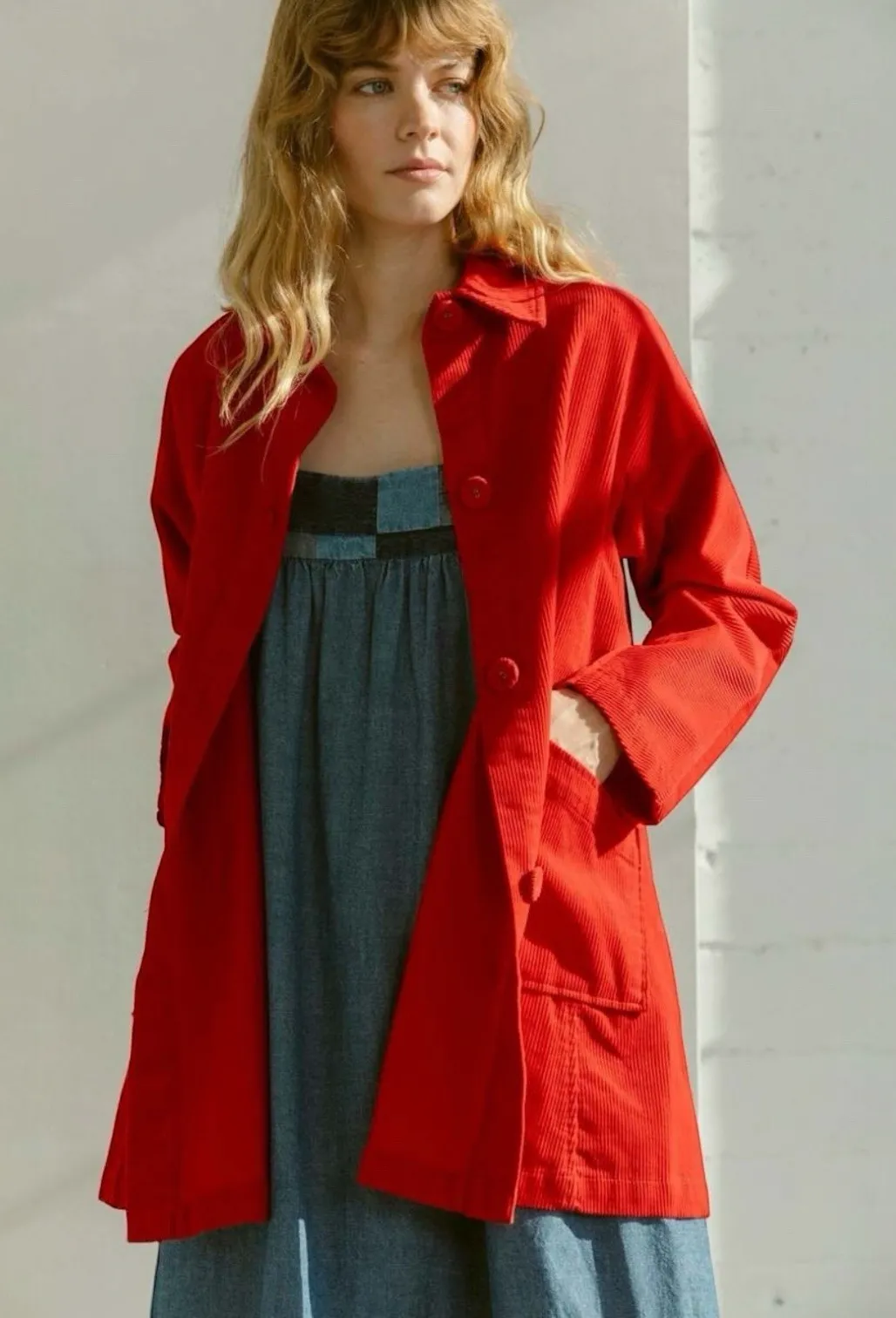 Carleen Constance Red Corduroy Jacket Chore Coat Sz S Cottagecore Lagenlook‎ - $219 - From Patchworked