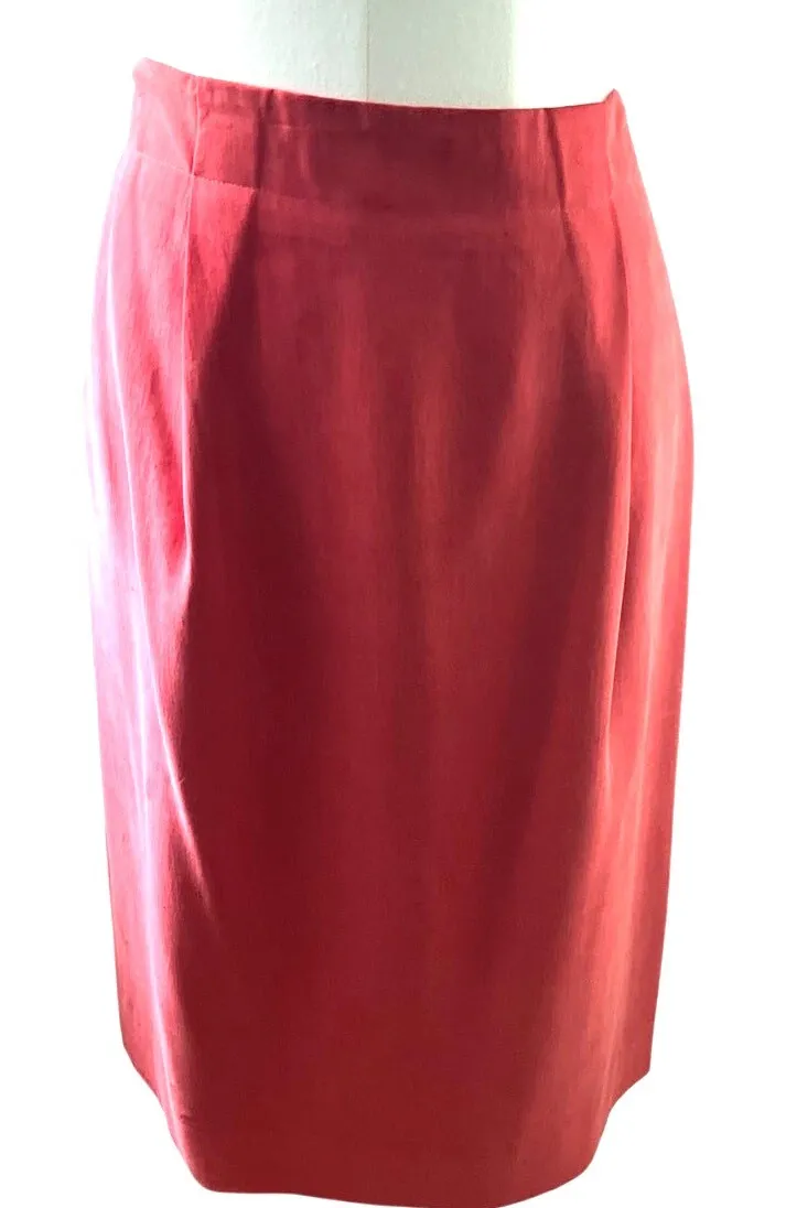 Stylecore Vibes Elegant and versatile Carlisle 100% silk pencil skirt in a coral-salmon hue. Perfect... Show more