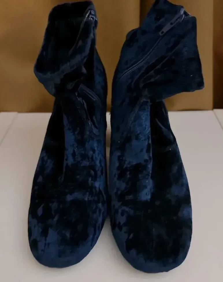 CARLOS BY CARLOS SANTANA WOMEN'S SIZE 9 M BLUE CRUSHED VELVET BLOCK HEEL BOOTS - $20 - From Sandra