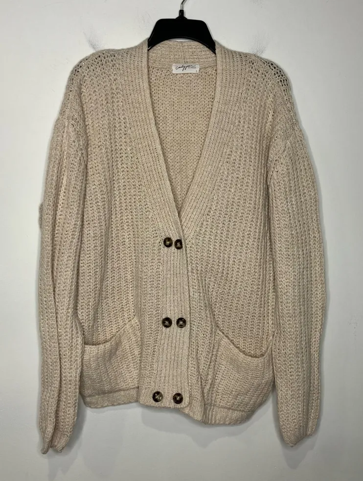 Carly Jean Los Angeles CJLA oatmeal cardigan sweater double buttons, pockets women’s size large Very good preowned condition! Bundle 2 or more items & save! Open to reasonable offers. ❤️🖤🩷