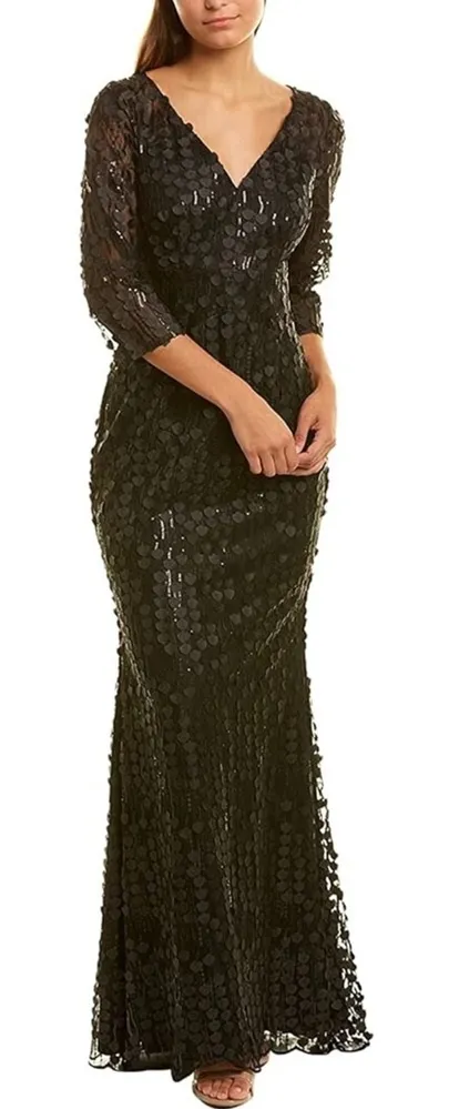Carmen Marc Valvo 3D floral applique black sequin mermaid black lace‎ gown XS - $75 - From Snob