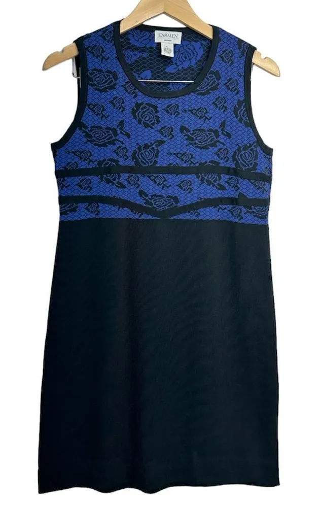 Carmen Marc Valvo A-line Stretch Sleeveless Blue/Black Floral Dress Size XL Condition is New without tags No flaws Measures approximately 19” inches across chest 36” in length Same day Shipping 🚚
