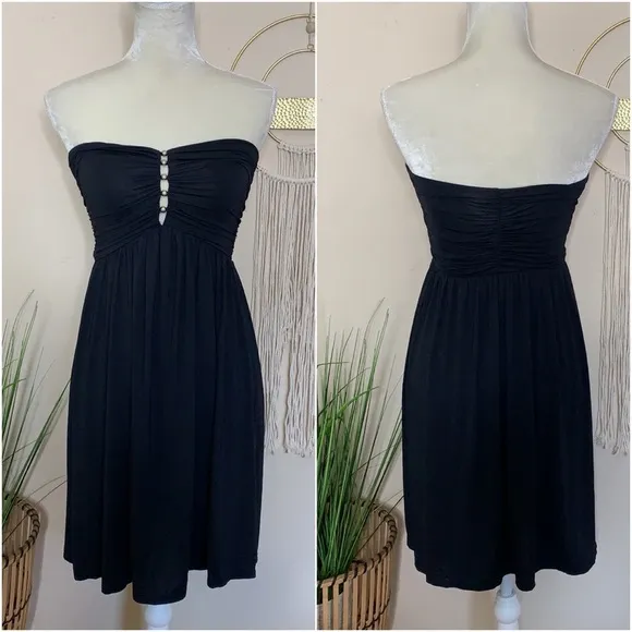 Size S Color Black/Silver studs Excellent condition Stay classy, chic and totally ready for all the swimming and water activities this summer with this Carmen Marc Valvo Swimwear coverup dress in a strapless silhouette and lightly padded bust for added coverage and support. Studded detail at front and semi sheer bottom (see photo). 13.25” pit to pit 29” length