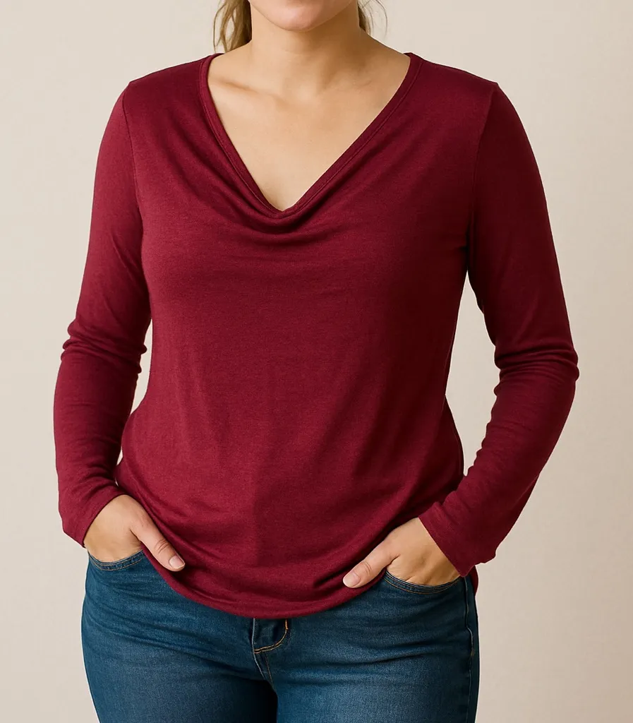 Women's Burgundy Long Sleeve Top with Zippers on the Shoulders Red Size L - $21 - From Trendy
