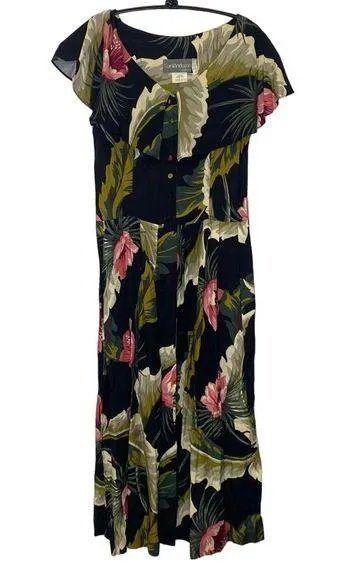 Carol Anderson California tea length floral vintage dress. Sleeveless with shawl collar. Pleated skirt. Button down. V-neck. 1980’s style. Pockets. Tropical. ⭐️ Good pre-loved condition ———> Hook & eye closure is missing eye but is redundant with buttons. ⭐️ Size small *tag says 9/10 but measurements are equivalent to a small/4 in today’s sizes. ⭐️ 100% rayon ⭐️ Dry clean only ⭐️ Measurements in pictures ——-> 49.50” length ⚡️⚡️ fast shipping!!⚡️⚡️ M10 Carol Anderson California tea length floral dress sleeveless shawl collar button down rayon pleated v-neck 1980’s vintage tropical