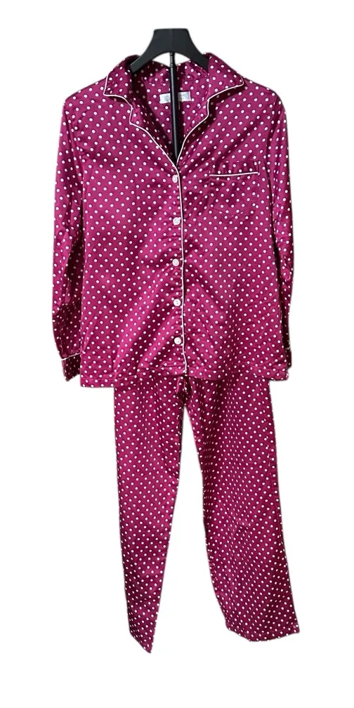 Carole Hochman Pajamas 2 Piece PJ Set Long Sleeve Button Up Elastic Waist Red and White Polka Dot Size Small GUC - Very Minor Signs of Wear - No Rips, Holes, or Stains Smoke Free - Dog Friendly Home Professional and Fast Shipping