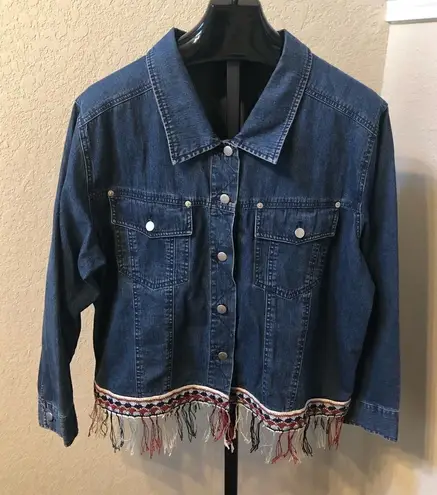 Carole Little Crochet/ Fringed Denim Jacket Sz 24 Blue - $62 - From Blue