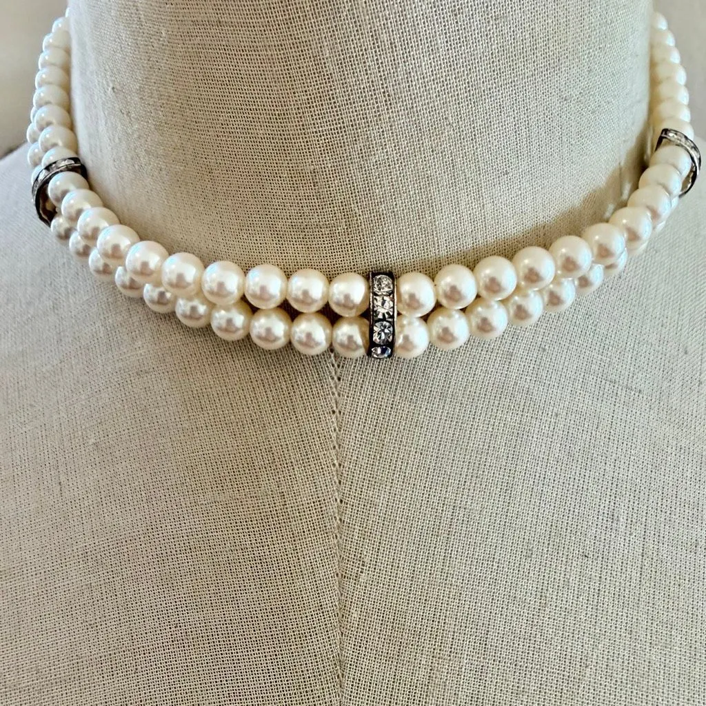 Carolee double Strand Faux Pearl & Rhinestone Choker Gorgeous signed Carolee choker with two glos... Show more