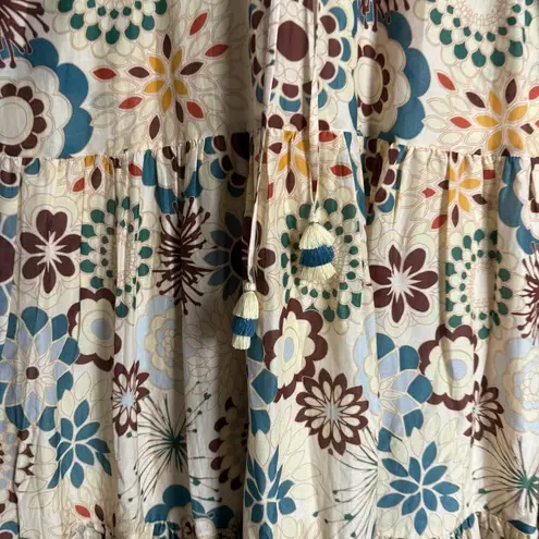 NWT - new with tag but brand tag needs an extra stitch as it is falling off. Size: Small but could also fit a medium Approximate measurements with garment laying flat: 19” bust, 18” waist, 58” length Color: Cream/Multicolor Long sleeves Collared Button placket Tiered Long, flowy maxi length Retro floral print Cotton and silk blend OFFERS WELCOME BUNDLE & SAVE MORE SAME OR NEXT DAY SHIPPING ITEMS PACKAGED WITH CARE