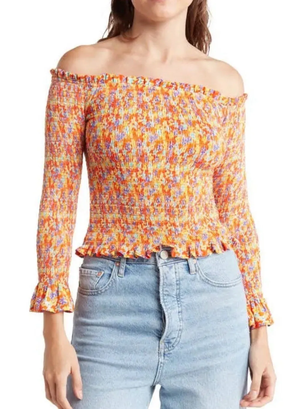 The Caroline Constas Felicia Smocked Red Ditsy Floral Off-The-Shoulder Top is a stylish blouse desig... Show more