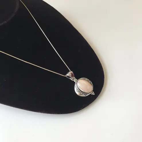 Carolyn Pollack Relios Sterling Silver Oval Mother of Pearl & Red Garnet Pendant. Beautiful oval mot... Show more