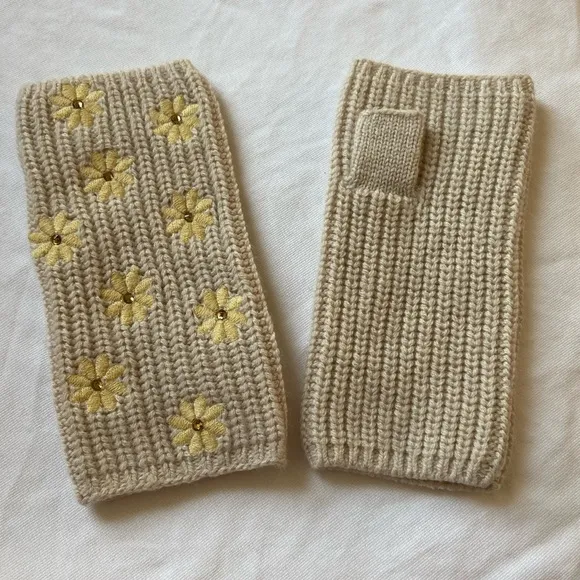 Carolyn Rowan Fingerless Gloves Italian Merino Wool Swarovski Flower Appliqués Yellow - $66 - From Yvonne